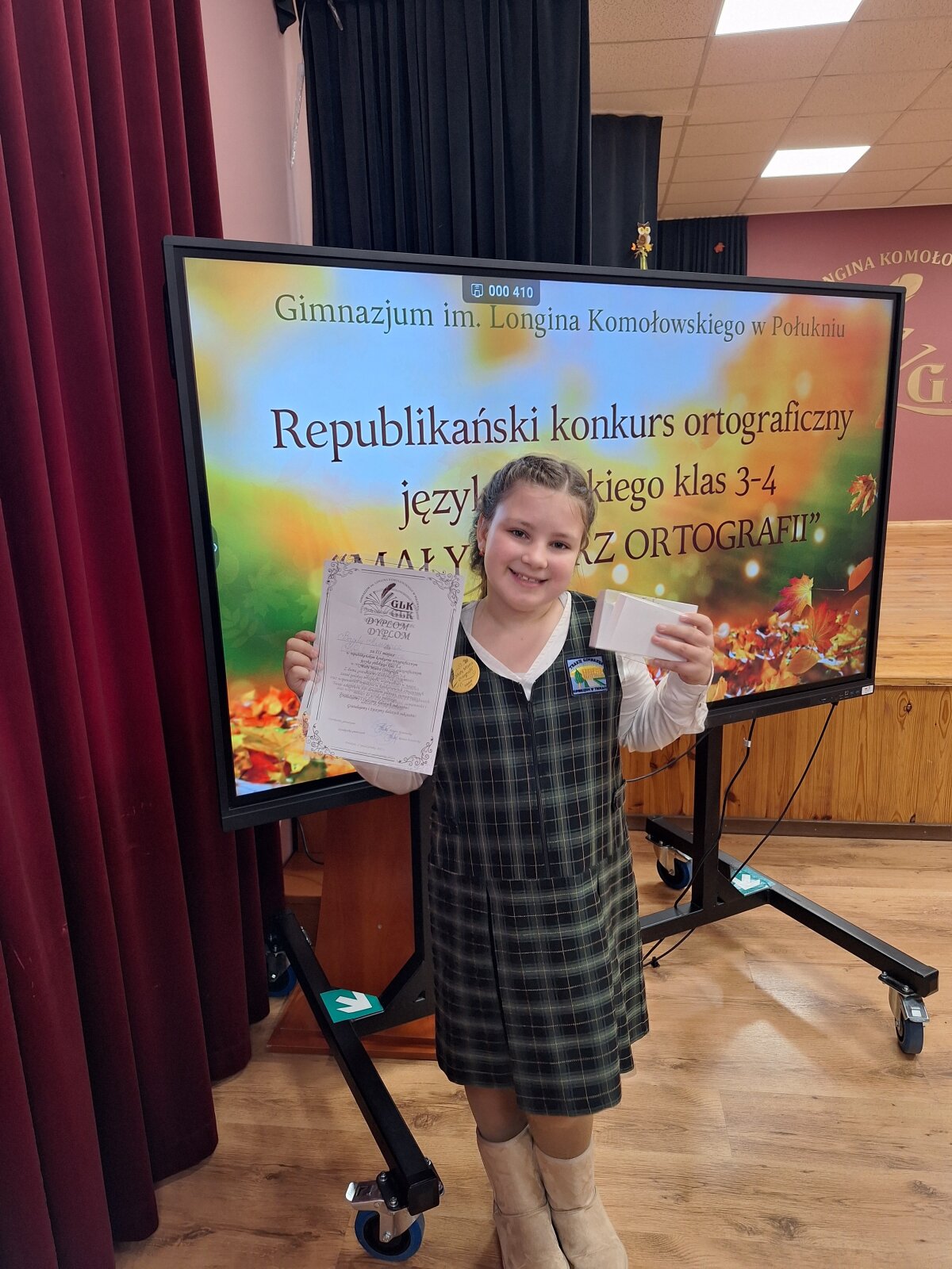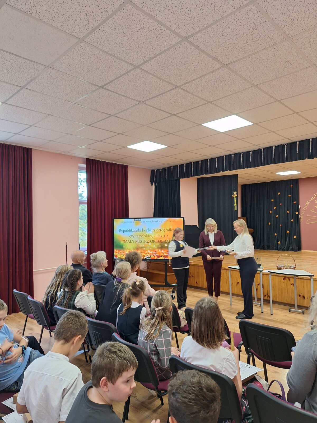 17 października br. w Gimnazjum im. Longina Komołowskiego w Połukniu odbył się republikański konkurs ortograficzny języka polskiego ,,Mały Mistrz Ortografii", którego celem było pogłębianie wiedzy o języku polskim oraz podnoszenie poziomu umiejętności poprawnego pisania. W miłej, przyjaznej atmosferze uczestnicy konkursu popisywali się znajomością zasad polskiej ortografii, wzięli udział w ciekawych zajęciach twórczo-edukacyjnych oraz poznali nowych kolegów.