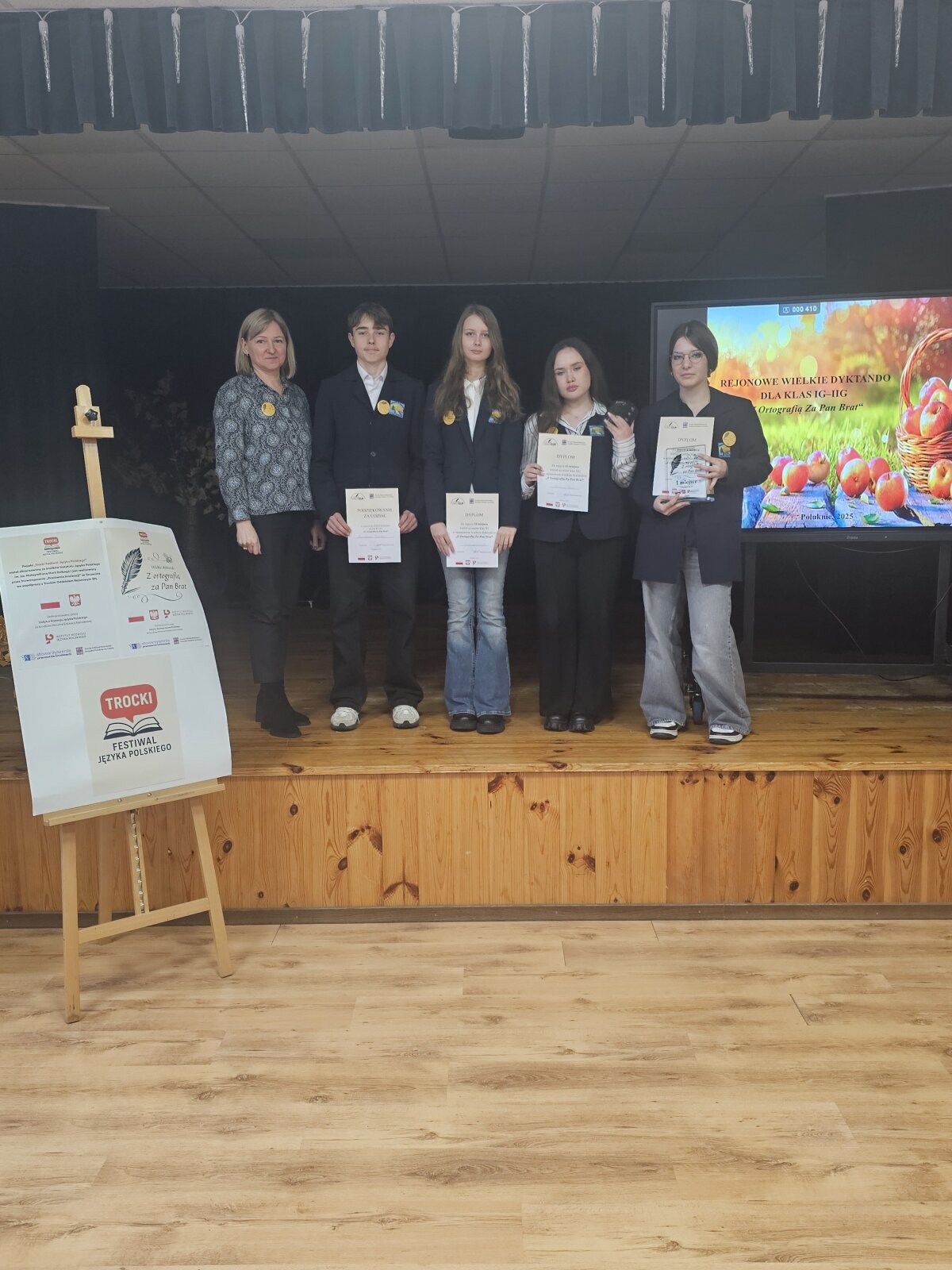 Wśród laureatów konkursu znaczącą część stanowili właśnie reprezentanci Gimnazjum w Trokach, którzy wykazali się doskonałą znajomością zasad polskiej ortografii oraz dużą starannością językową.