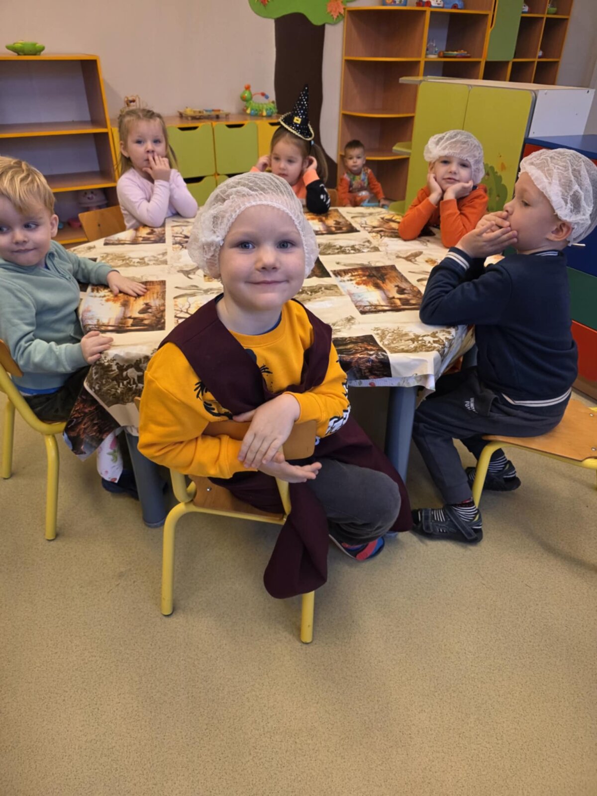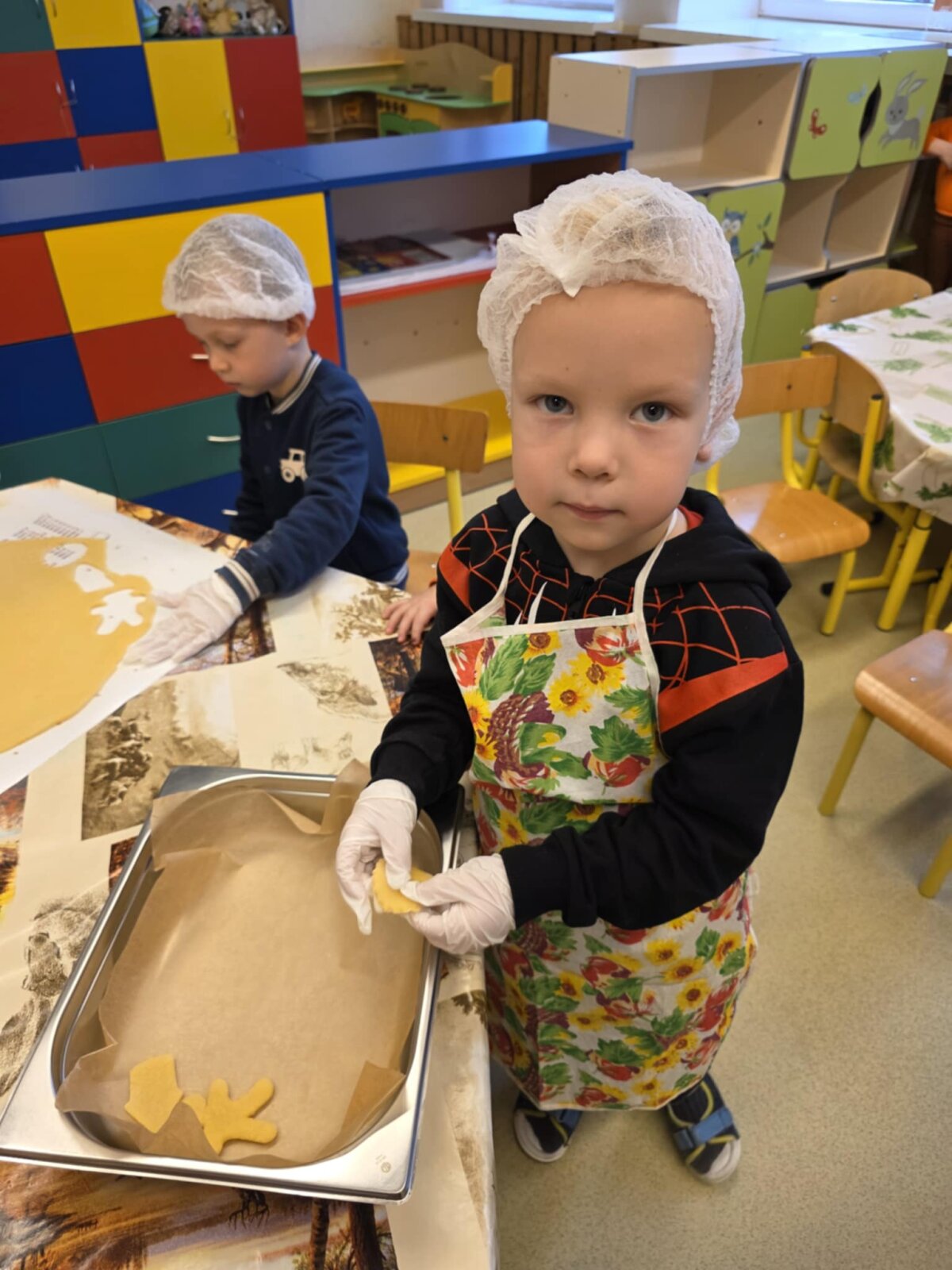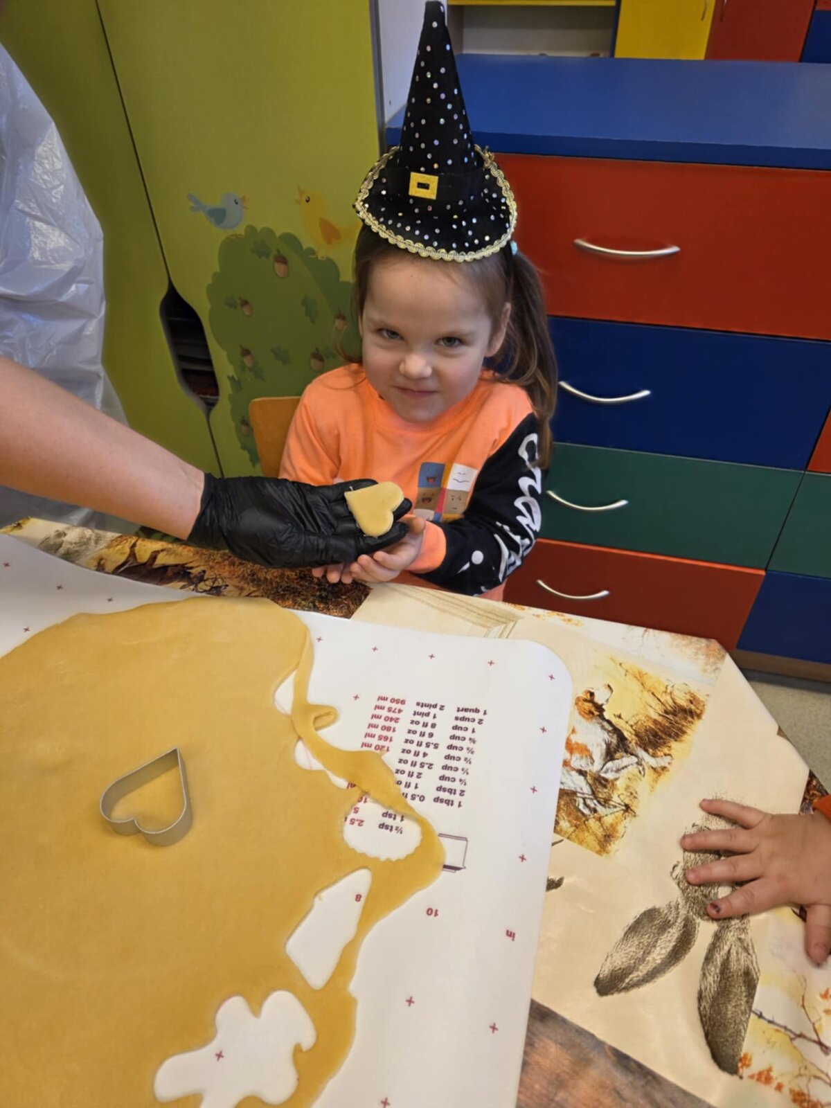 Maluchy z dużą ciekawością oraz zaangażowaniem mieszały składniki, wałkowały ciasto i wykrawały różne kształty ciasteczek. Gdy wypieki były gotowe- odbyła się degustacja. To był dzień pełen radości, kolorów i jesiennej atmosfery.