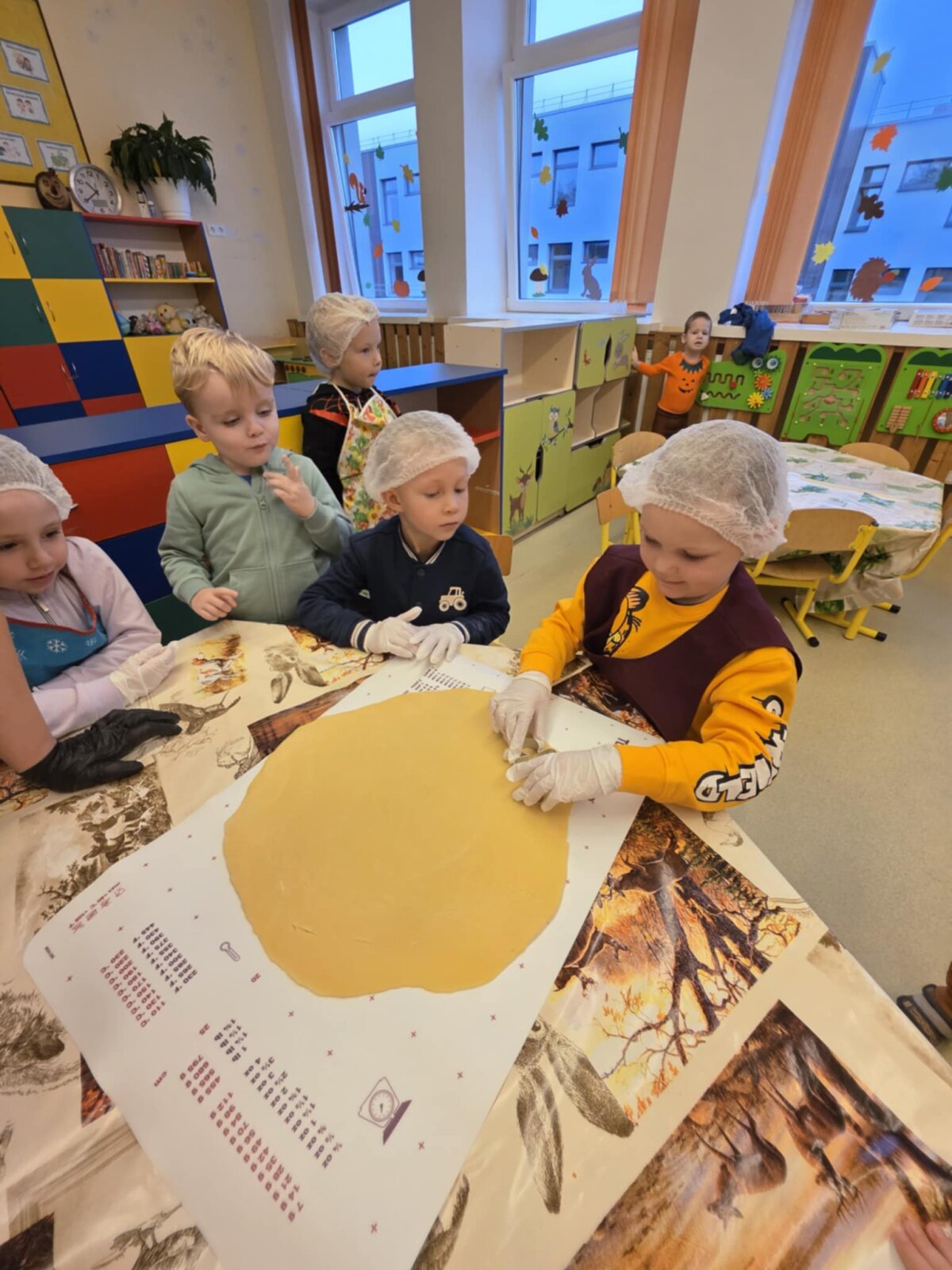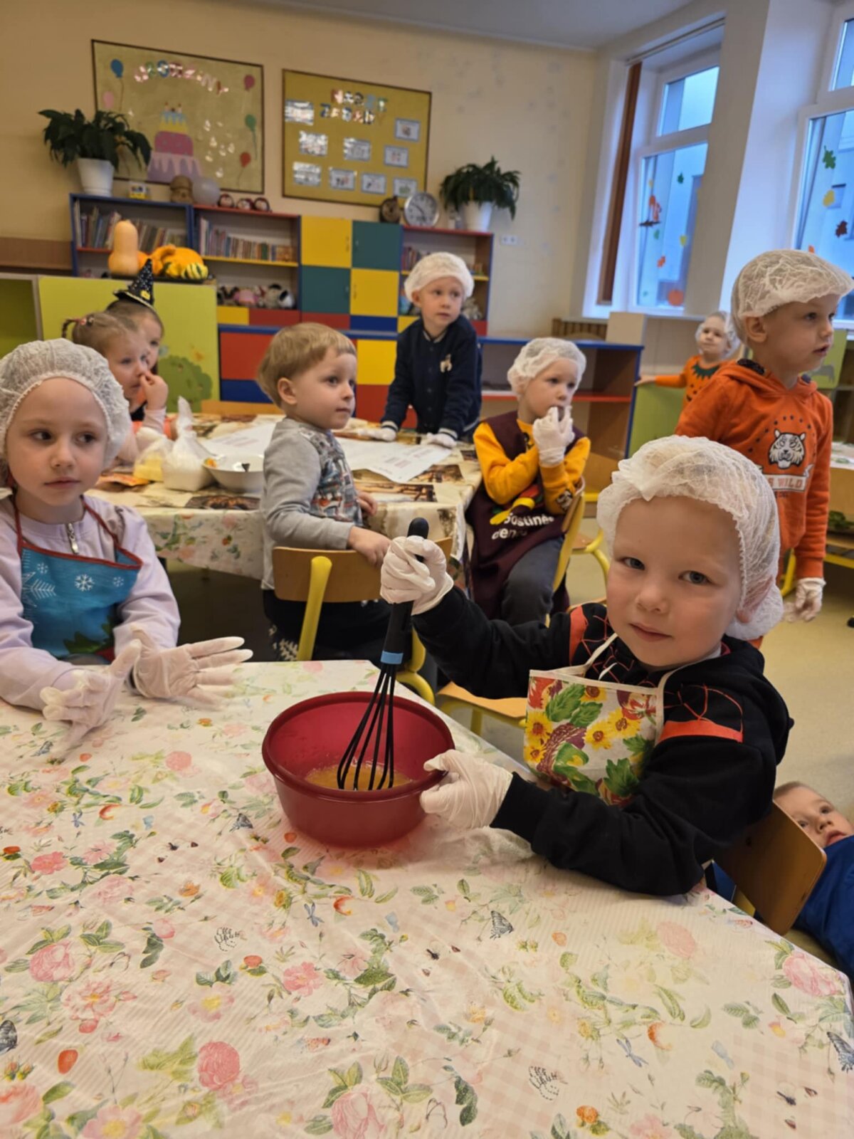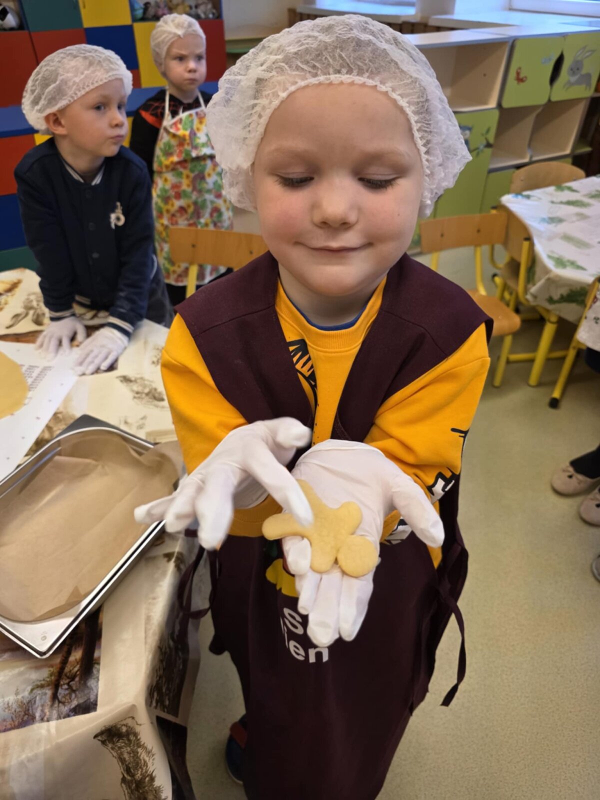 Maluchy z dużą ciekawością oraz zaangażowaniem mieszały składniki, wałkowały ciasto i wykrawały różne kształty ciasteczek. Gdy wypieki były gotowe- odbyła się degustacja. To był dzień pełen radości, kolorów i jesiennej atmosfery.