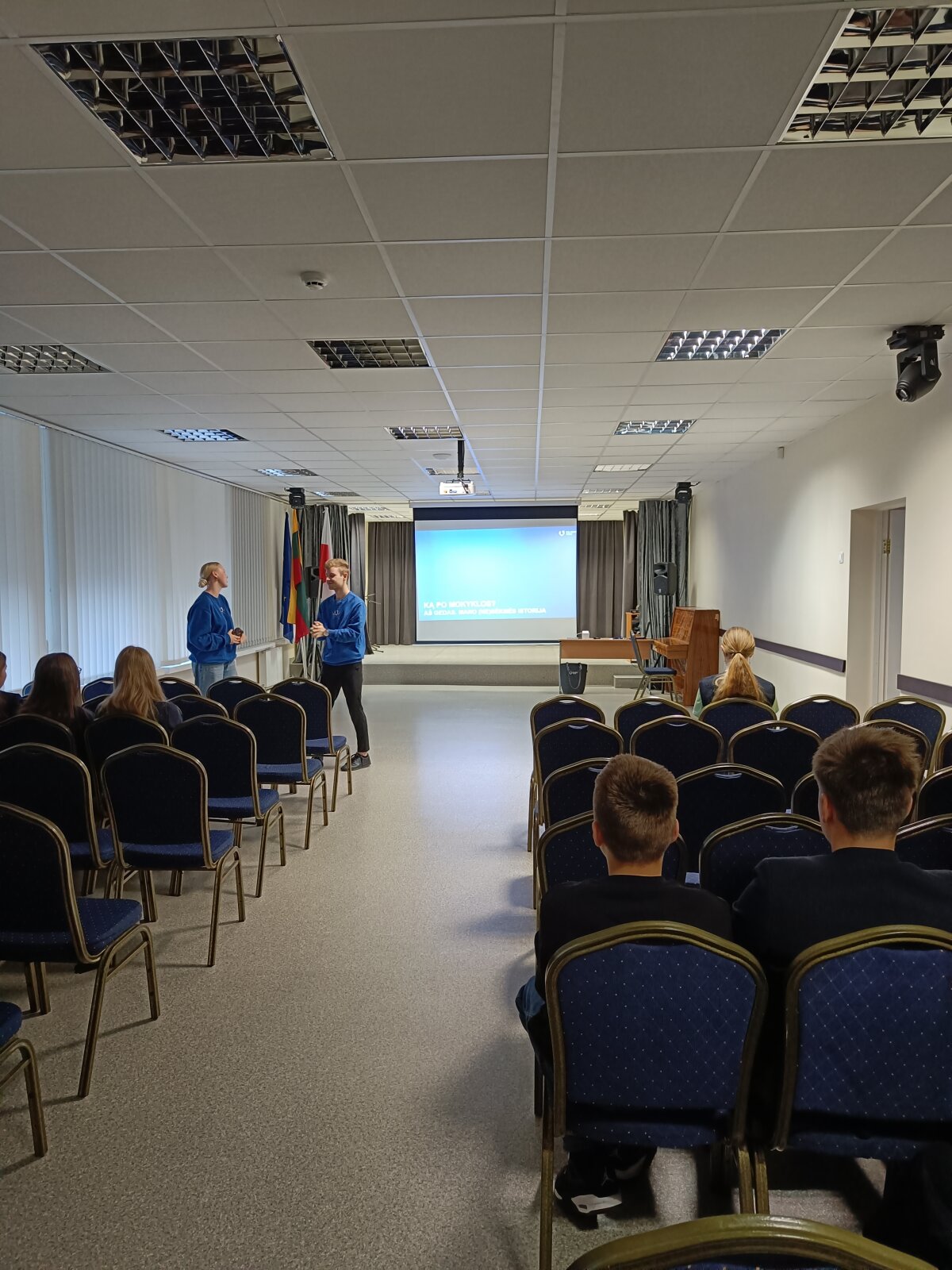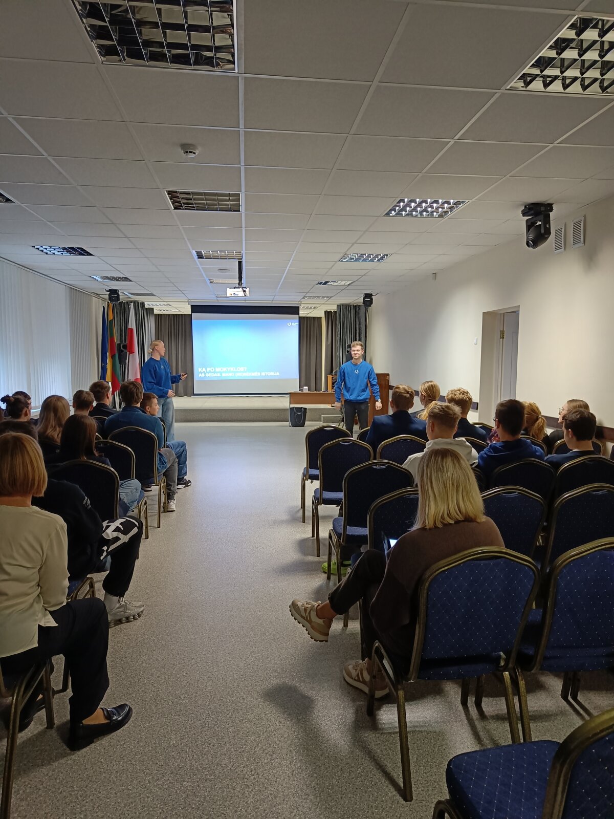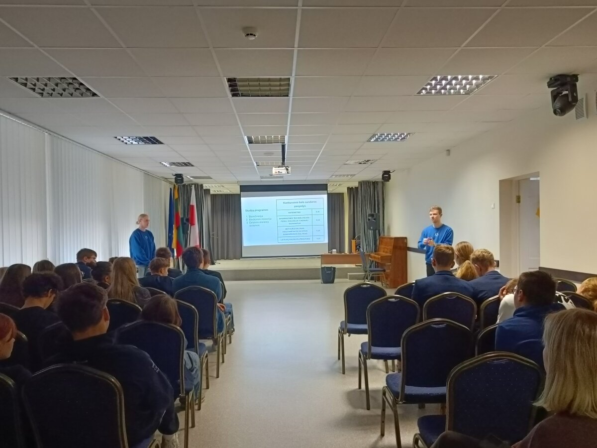 Spalio 17 dieną gimnazijos mokiniai turėjo galimybę išklausyti įdomias paskaitas ir pasisemti patirties iš studentų. 11 - 12 klasės mokiniai klausėsi paskaitos “Stojančiųjų klaidos ir LAMA BPO pildymas”. Dalyviai išgirdo apie dažniausiai daromas klaidas LAMA BPO sistemoje ir gavo labai naudingų patarimų apie stojimo galimybes, kurie padės planuojant savo karjeros kelią.