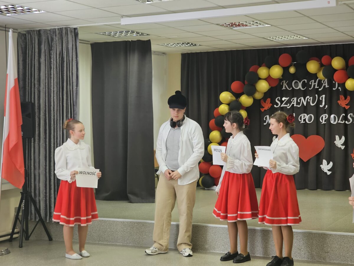 Podczas uroczystości na scenie zaprezentowali się uczniowie od zerówki aż do klasy IVG. Dzieci i młodzież z wielkim zaangażowaniem deklamowali wiersze, śpiewali piosenki, tańczyli oraz odgrywali krótkie scenki teatralne. Każdy występ był starannie przygotowany i nagradzany gromkimi brawami publiczności.