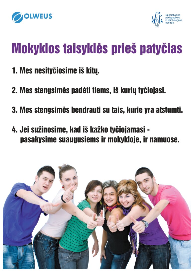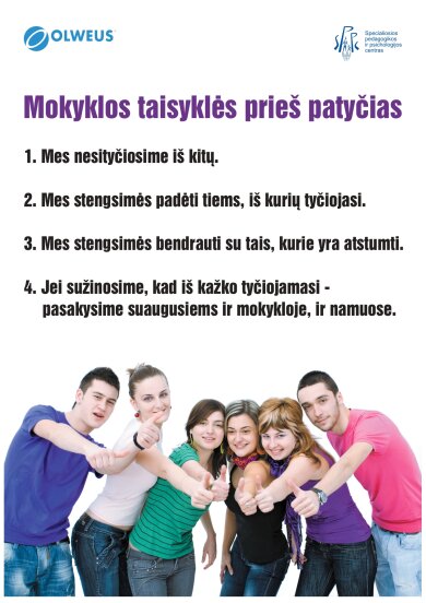 - Jei sužinosime, kad iš kažko tyčiojamasi – pasakysime suaugusiems mokykloje arba namuose.
